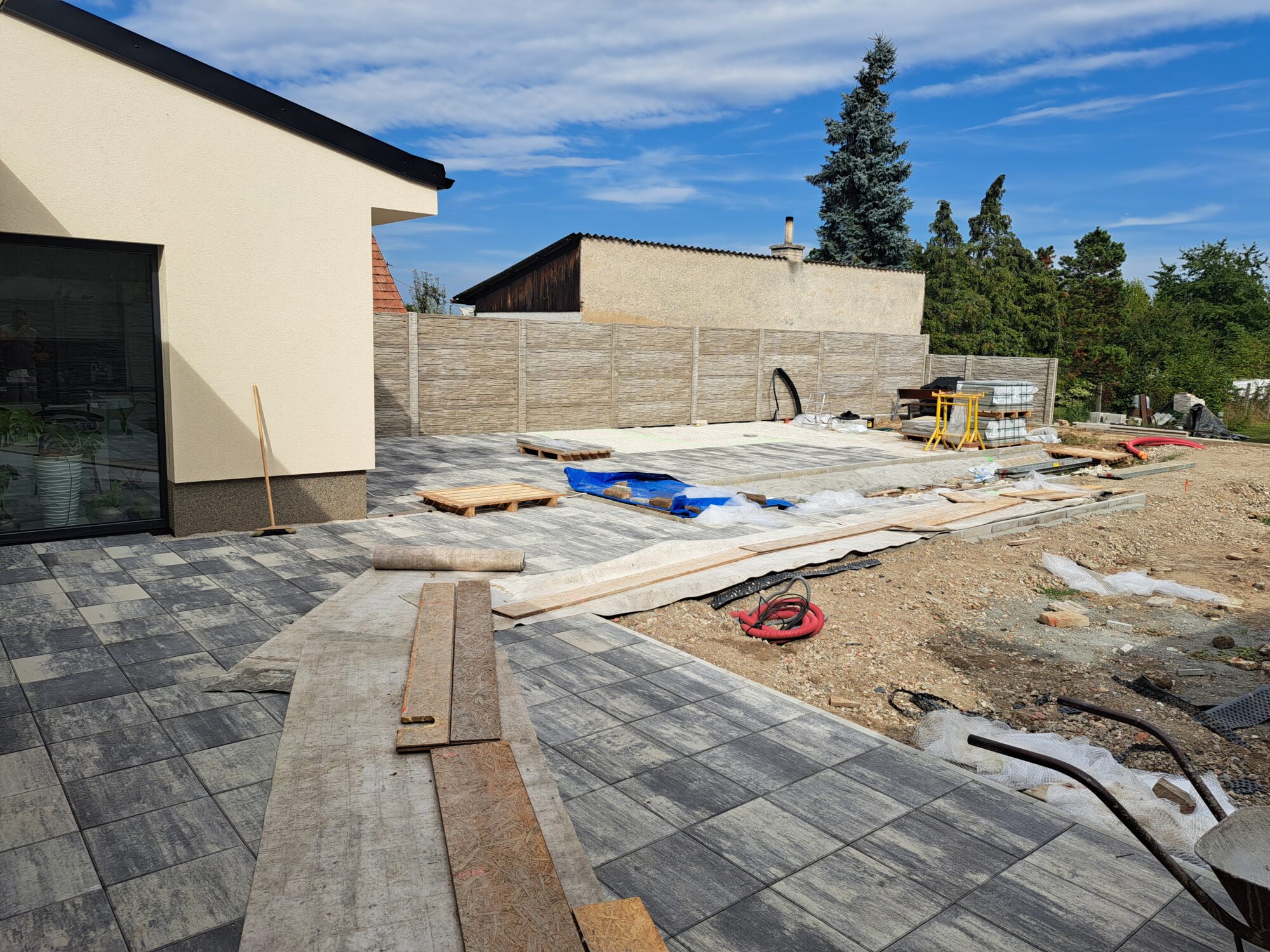 • Zhutnění dlažby vibrační deskou pro zajištění pevnosti